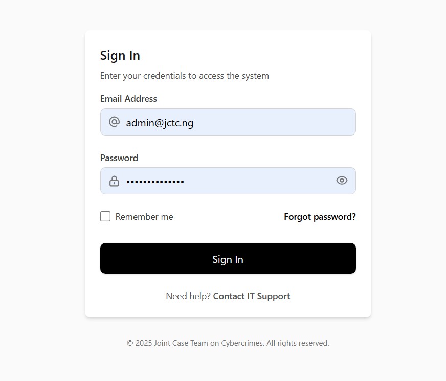 Navigate to your JCTC instance URL (e.g., https://jctc.ng).